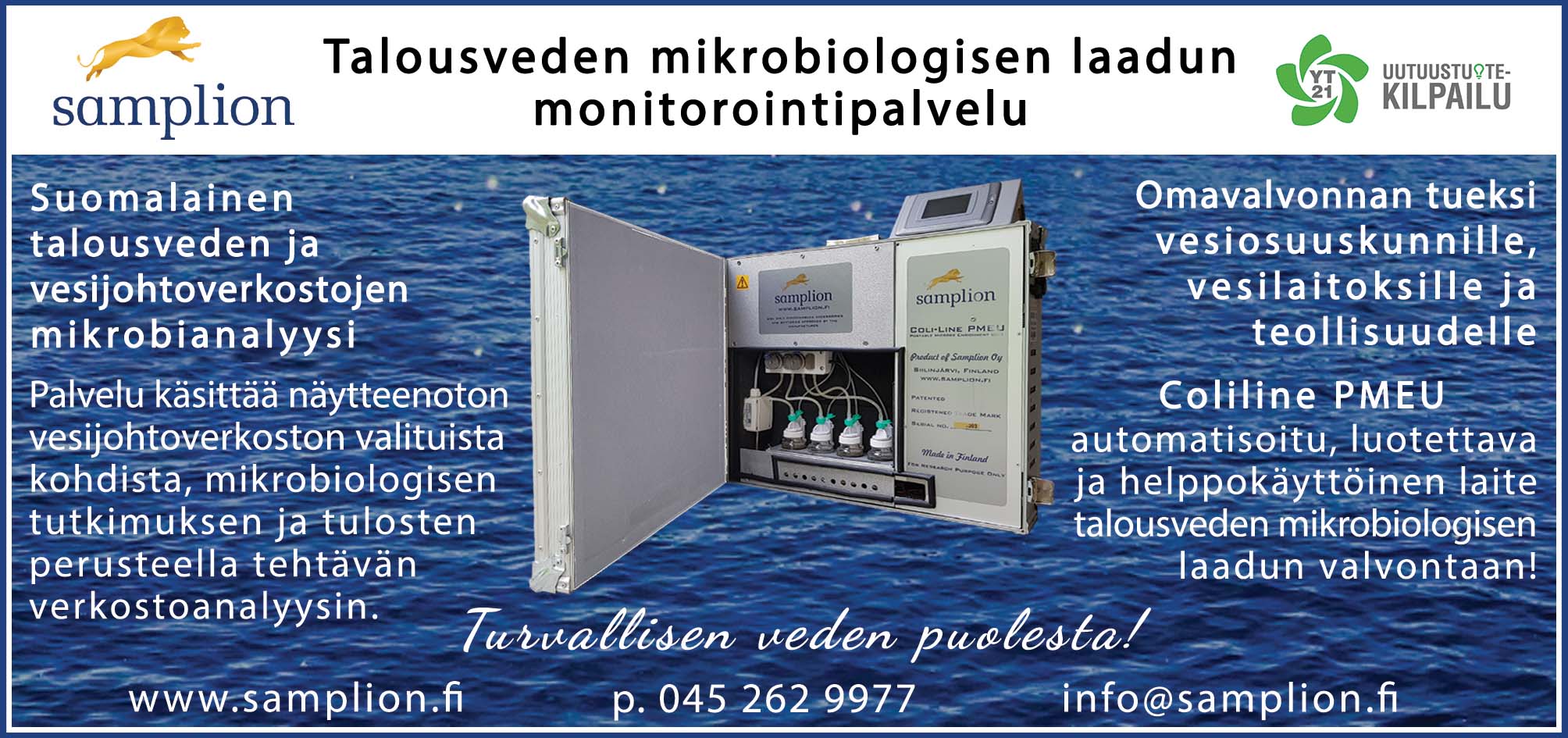 Samplionin ilmoitus Vesitalous-lehdessä lokakuu/2021